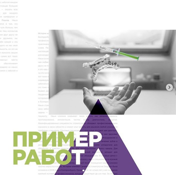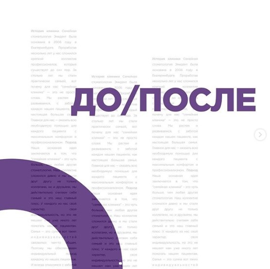 5. Фото до / после и примеры работ – это основной показатель работы клиники. К сожалению, живой визуал к данным рубрикам не выглядял эстетически привлекательным. Для того, чтобы у пользователей страница не вызывала отвращения, нами было принято решение разработать под данные посты обложки, которые бы отражали стилистику брендбука и подходили под общее оформление сетки. Ниже добавляем примеры: