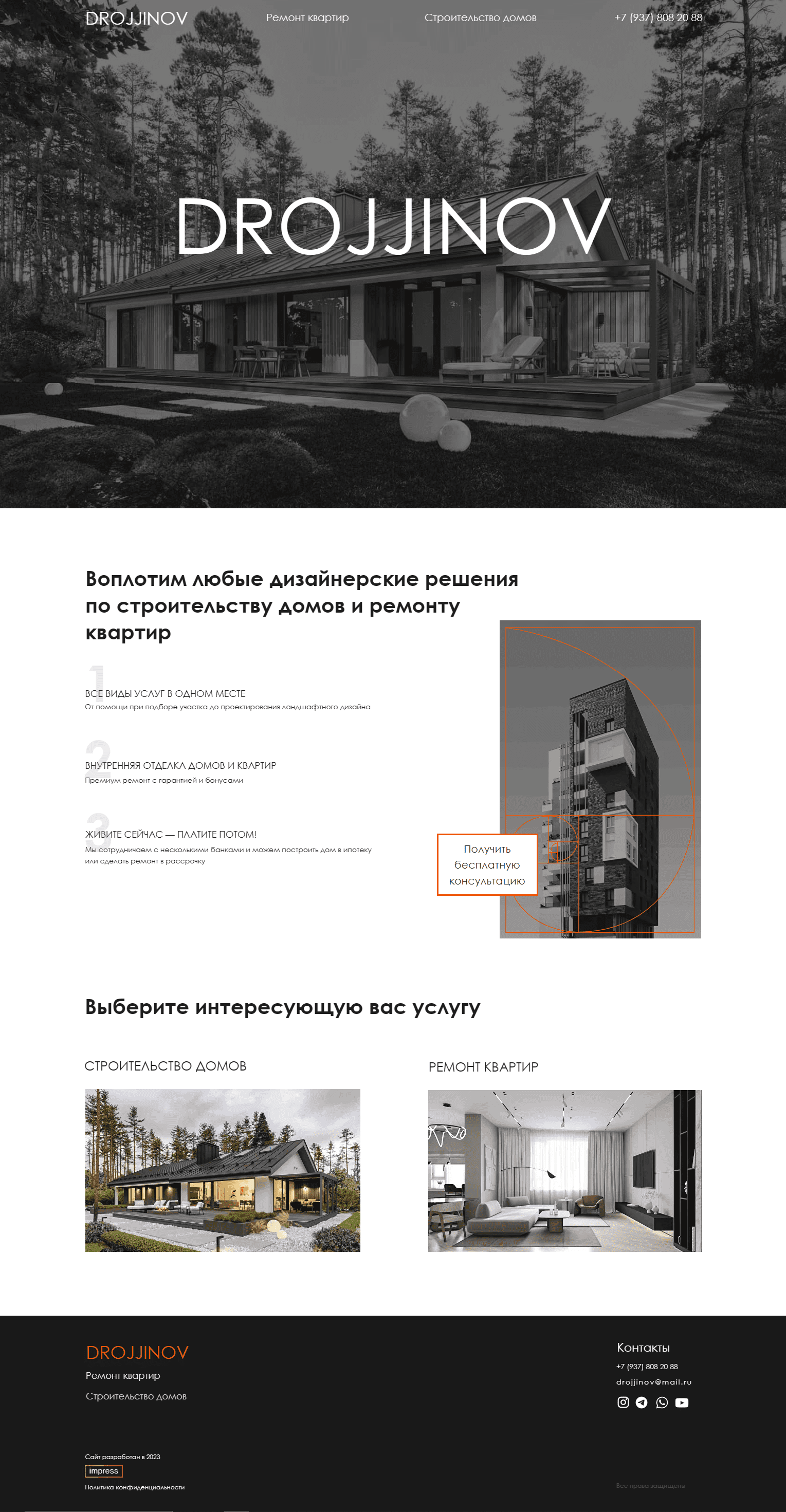 Компания Drojjinov занимается ремонтом квартир и домов с 2016 года и зарекомендовала себя как одна из лучших строительных компаний в Саратове и Саратовской области. С 2022 года компания также открывает новое направление — строительство домов.