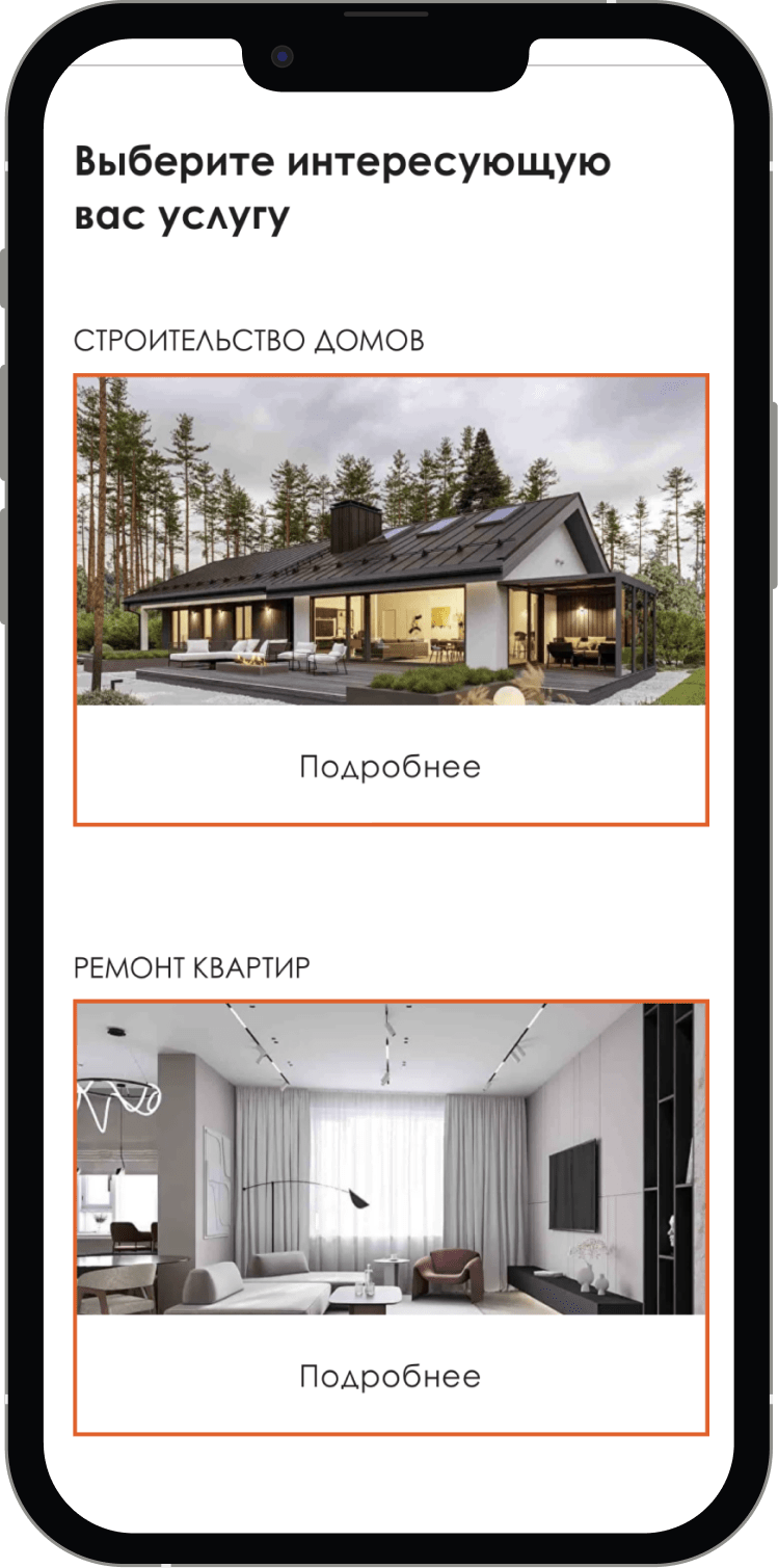В связи с появлением отдельного направления строительства домов было решено сделать главную страницу, с которой люди могли бы переходить в интересующий их раздел, и две страницы под каждое из направлений.