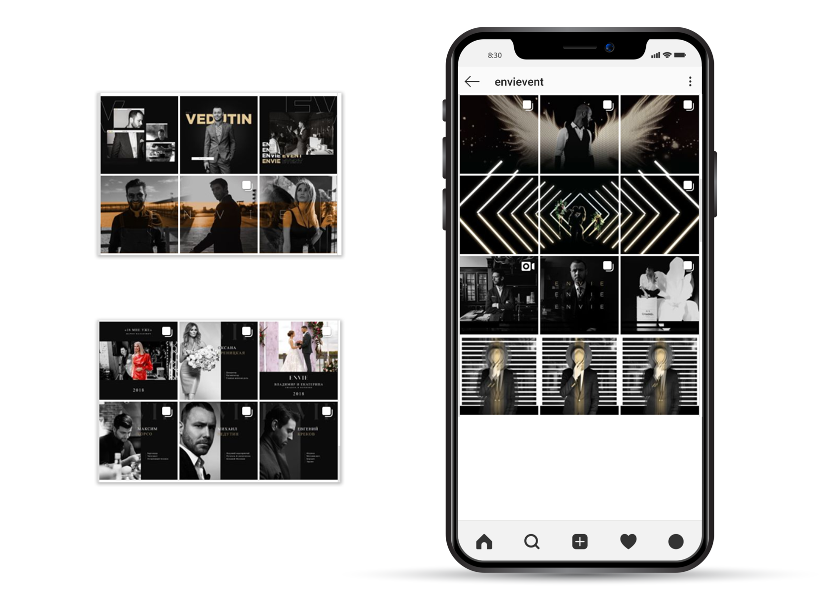 Основная задача, которую поставило перед нами event-агентство — создать оригинальный, привлекательный, стильный визуал, чтобы аккаунт выделялся среди других, посвящённых той же тематике.