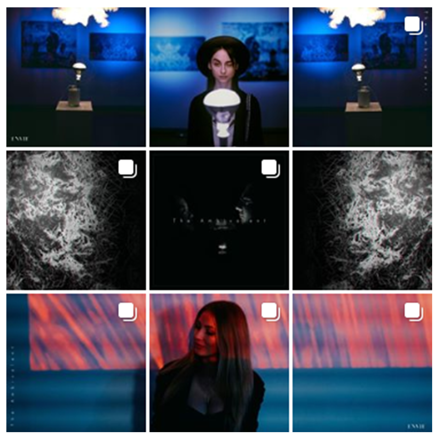 Изначально предполагалось создать аккаунт-портфолио, состоящий из блоков по 3, 6, 9 или 12 фото, посвящённых определённому мероприятию. Дизайн каждого блока составлялся из фотографий с мероприятия с добавлением отдельных графических и текстовых элементов. В процессе выяснилось, что следующие задачи между собой сочетаются с большой натяжкой: