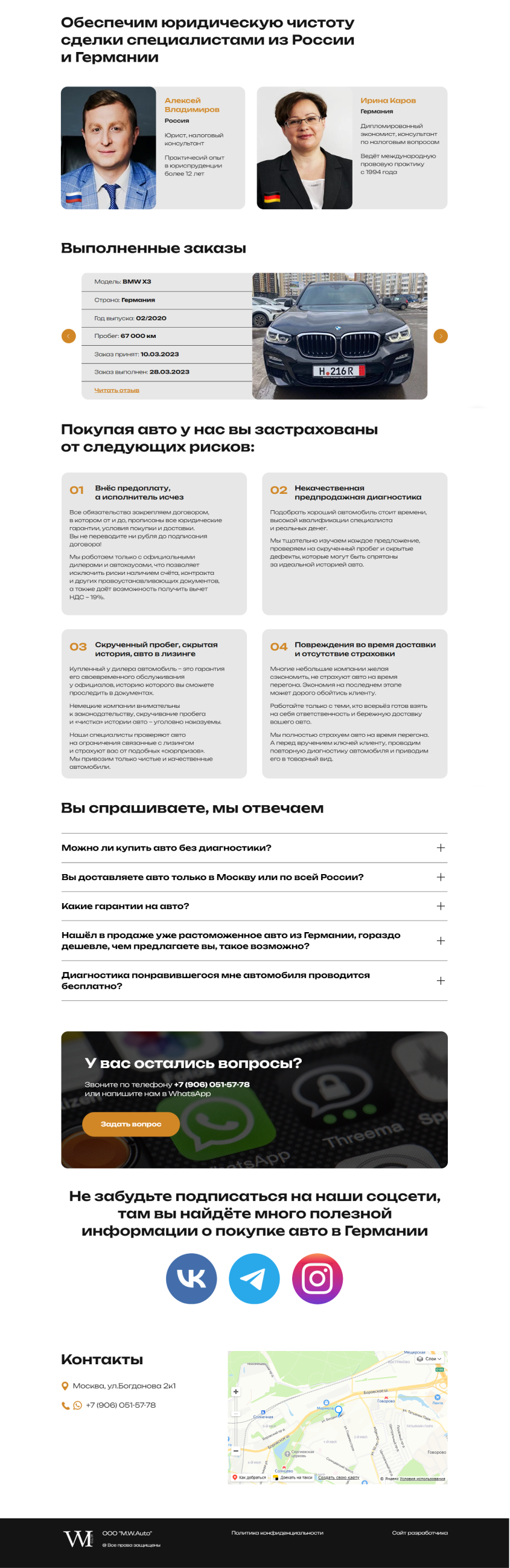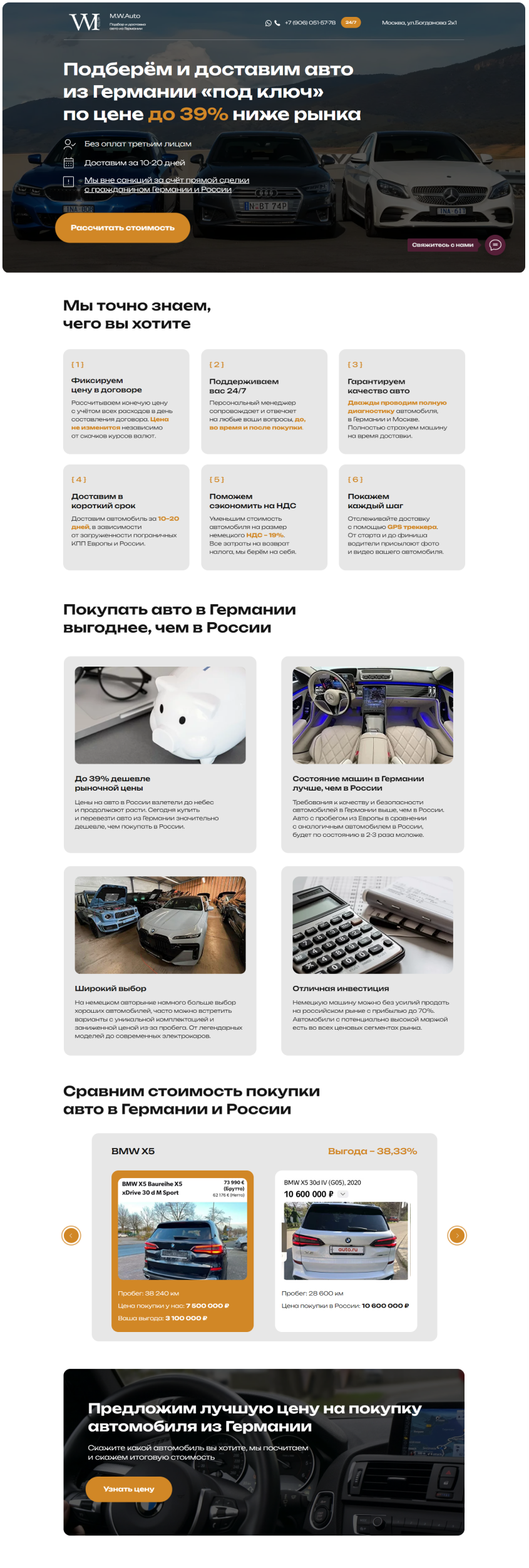На авто-рынке существует много мошенников и десятки разнообразных схем обмана, к тому же стоимость покупки авто достаточно дорогая и варьируется от 3-х до 15 млн.₽. Поэтому основная задача стояла снять все страхи и возражения клиентов о покупке автомобиля из Германии, показать, что MW Auto, максимально прозрачная и надёжная компания, которая гарантирует результат высокого качества.