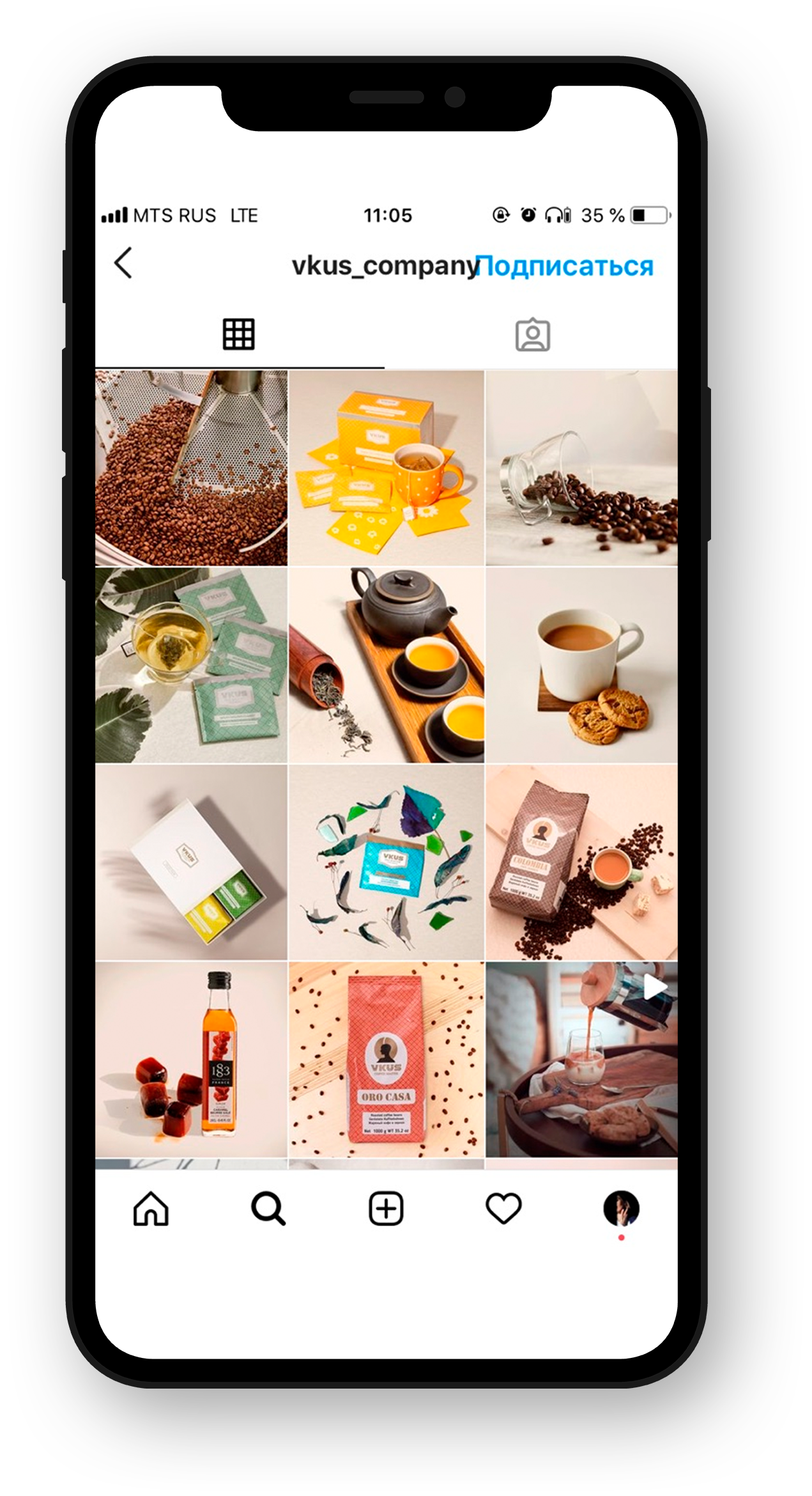 Нам повезло, у заказчика был постоянный фотограф и хорошо отлаженный процесс съёмки продукции. Поэтому фотографии в профиле были профессиональными, но лишёнными единой цветовой гаммы. Из-за этого лента выглядела хаотично, профилю не хватало целостности